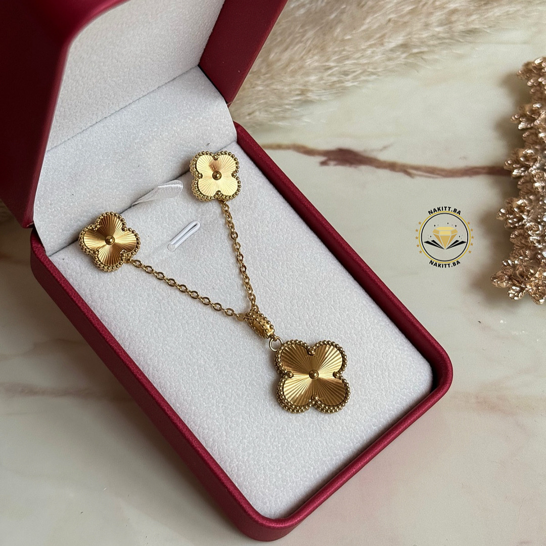 Ovaj set lančića i minđuša u obliku djeteline, donosi luksuzan izgled uz jednostavnost svakodnevnog nošenja.