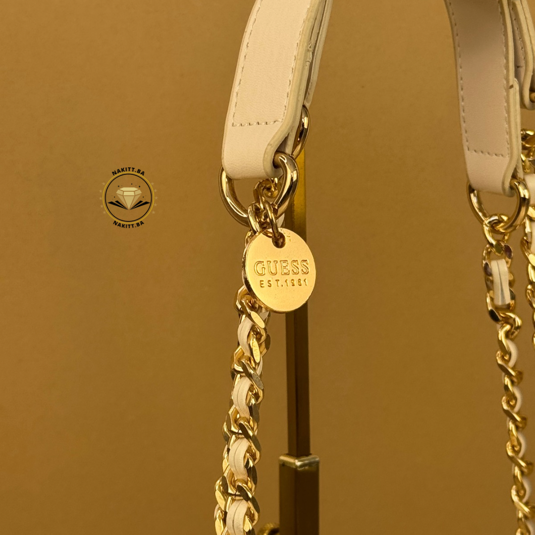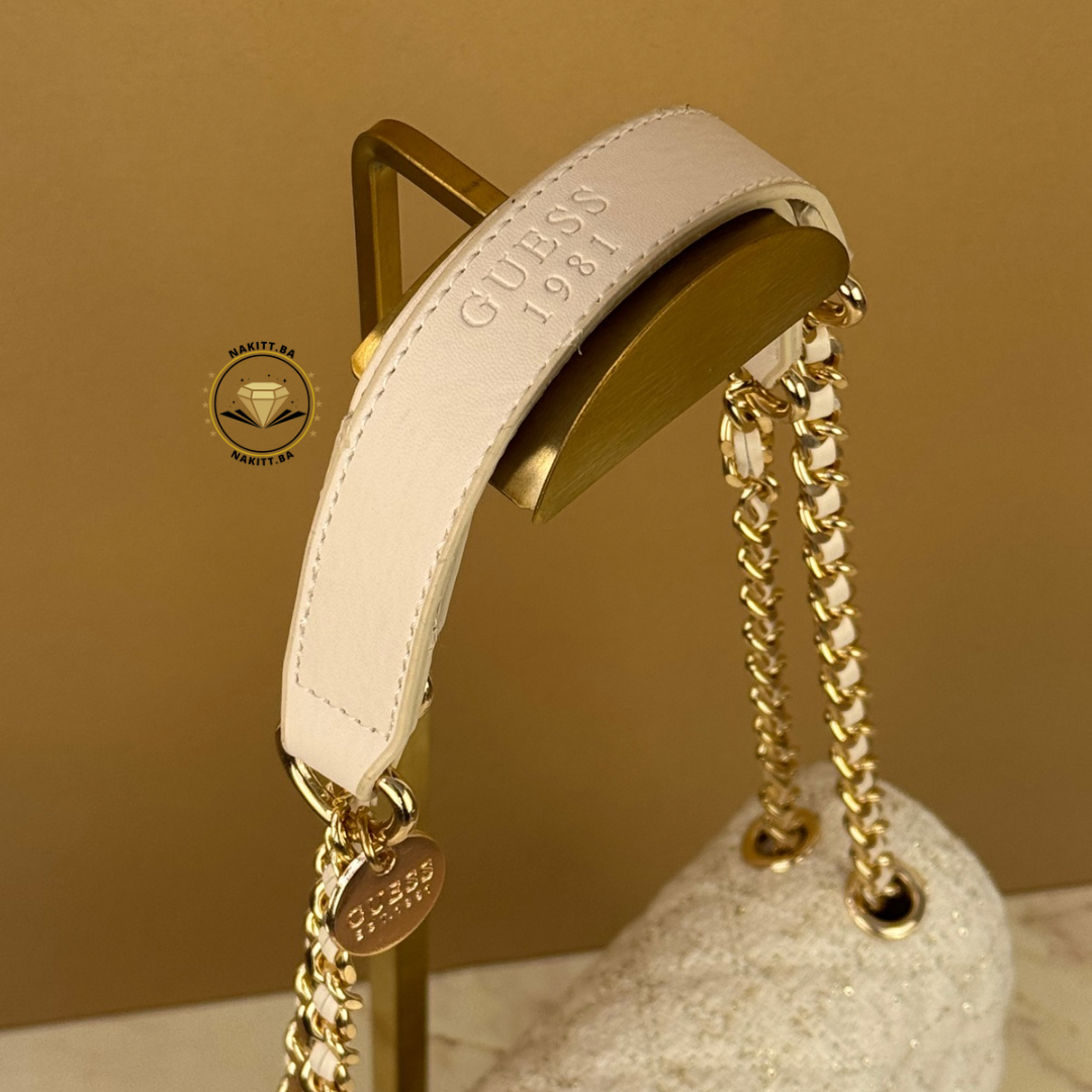🤍 Elegantna bijela torba sa bež detaljima koja odiše profinjenošću i ženstvenošću! Platnena tekstura u nježnoj nijansi savršeno se kombinuje sa zlatnim detaljima, stvarajući bezvremenski chic izgled koji pristaje uz svaki outfit.